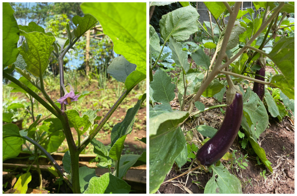 Gambar 2 dan 3. Bunga Terong Ungu dan Buah Terong Ungu di Kebun Seni Tani