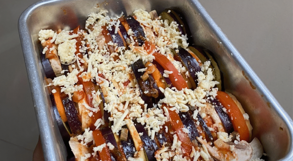 Gambar 9. Tian berisi sayuran yang sudah disusun dengan taburan keju